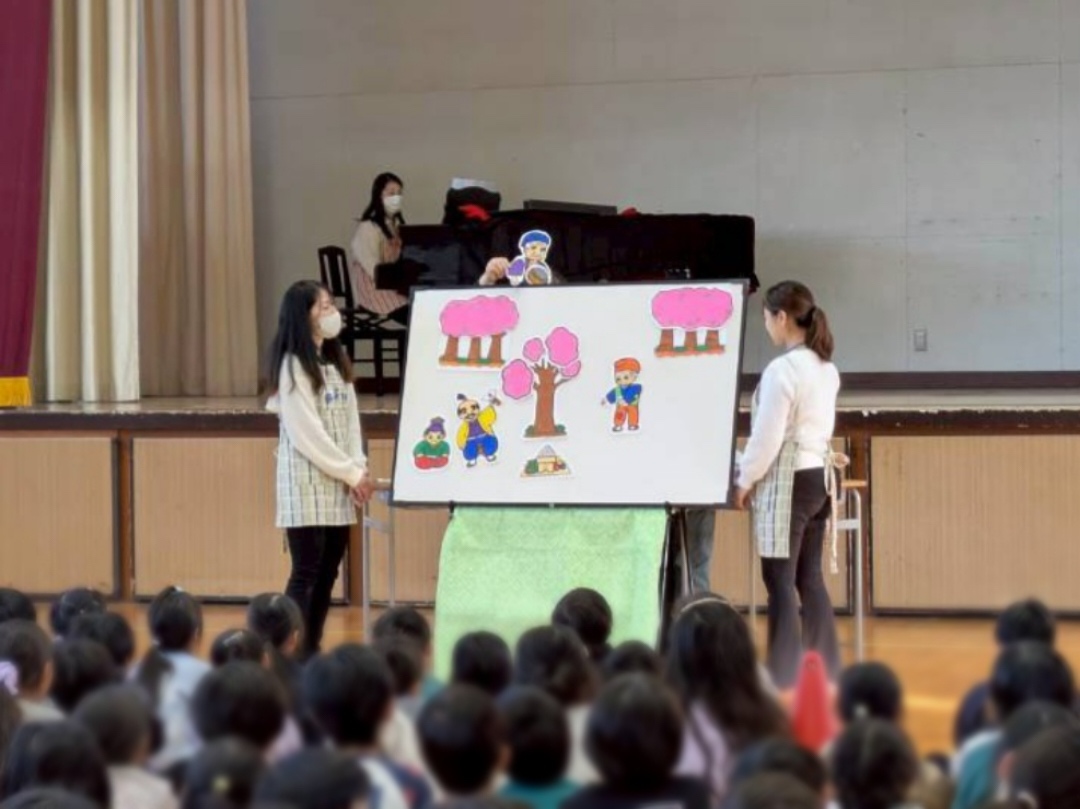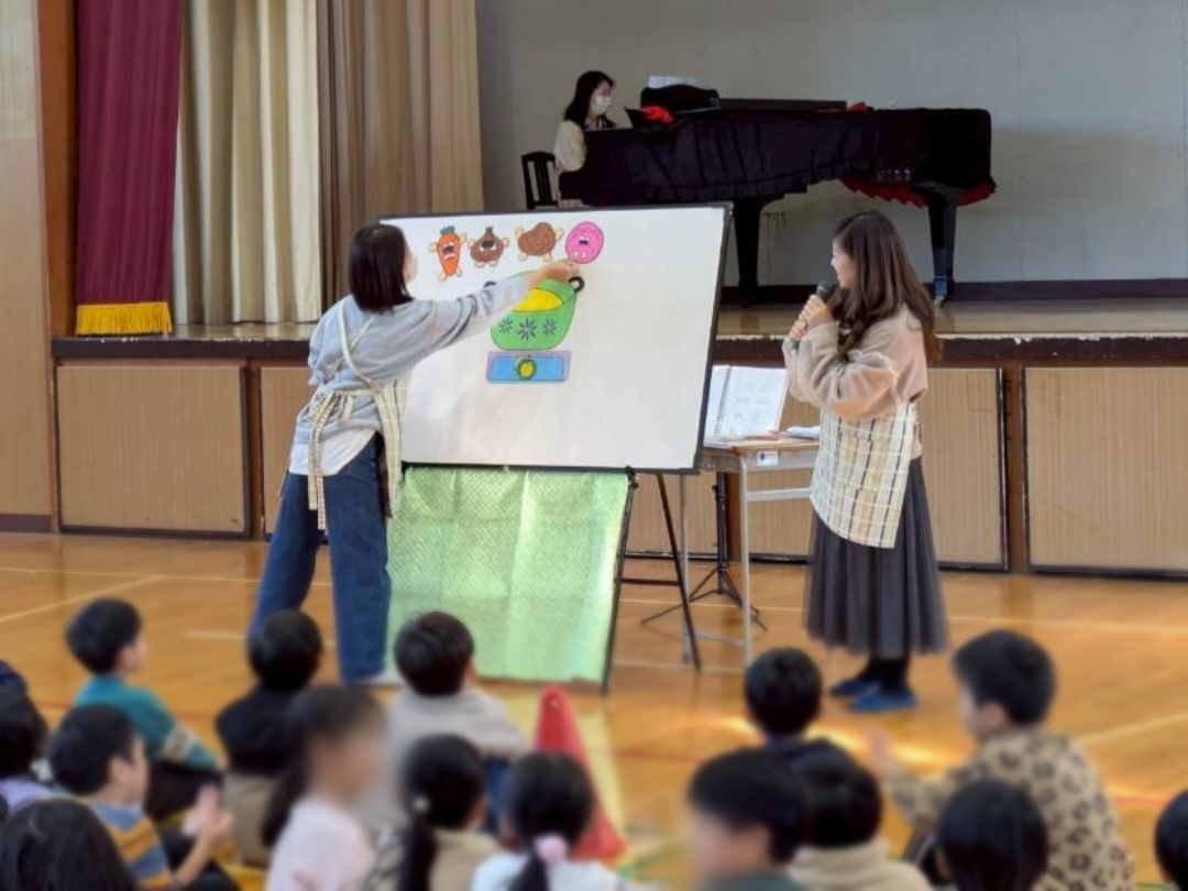 児童たちのお昼休みの時間に、体育館にて、のぶっくによるパネルシアターをさせて頂きました。